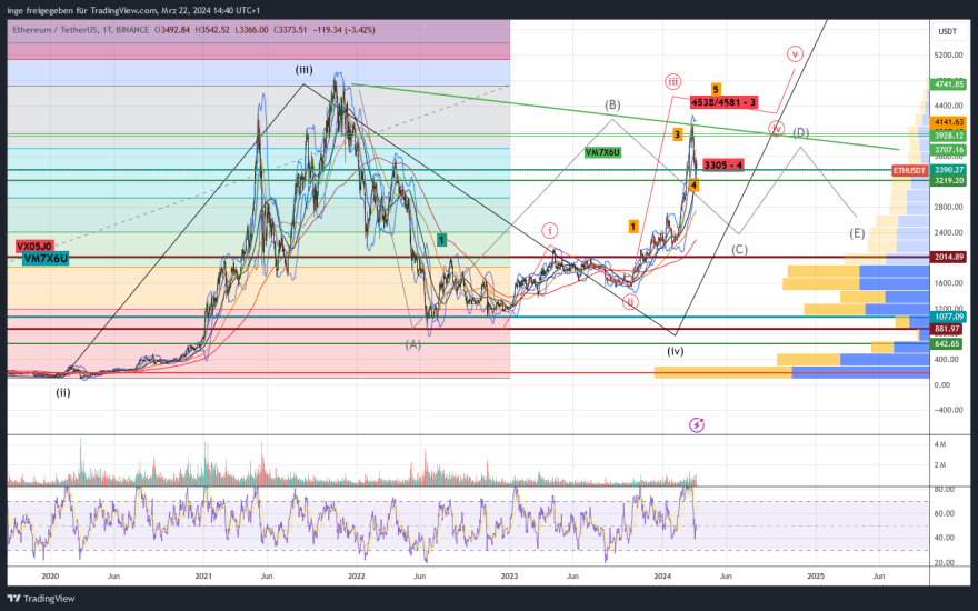 Alternativ könnte sich Ethereum aber auch in einer höhergradigen Welle 4 befinden - z.B. in einem Triangle.