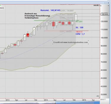 Während die amerikanischen Indizes in einem rekordverdächtigen Bullen-Tsunami von Allzeithoch zu Allzeithoch eilen und die Zeit für einen Einstieg eher ungünstig erscheint, lassen sich dennoch immer wieder schöne Trading-Setups für Einzeltitel finden.